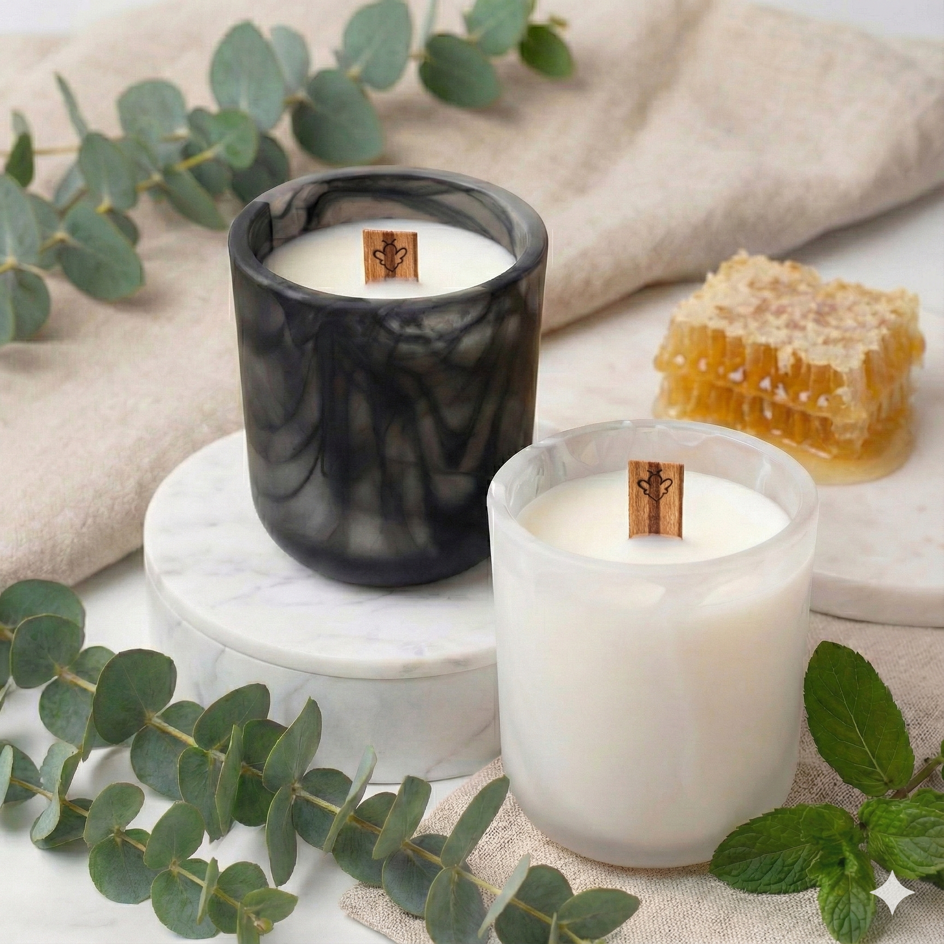 Our personal favorite! 10 oz Honey, Eucalyptus, and Peppermint scented beeswax and coconut wax candle. Finished with a crackling wooden wick. 100% handmade in California from organic and locally sourced ingredients. Scented with essential oils for a refreshing, non-toxic, aroma.